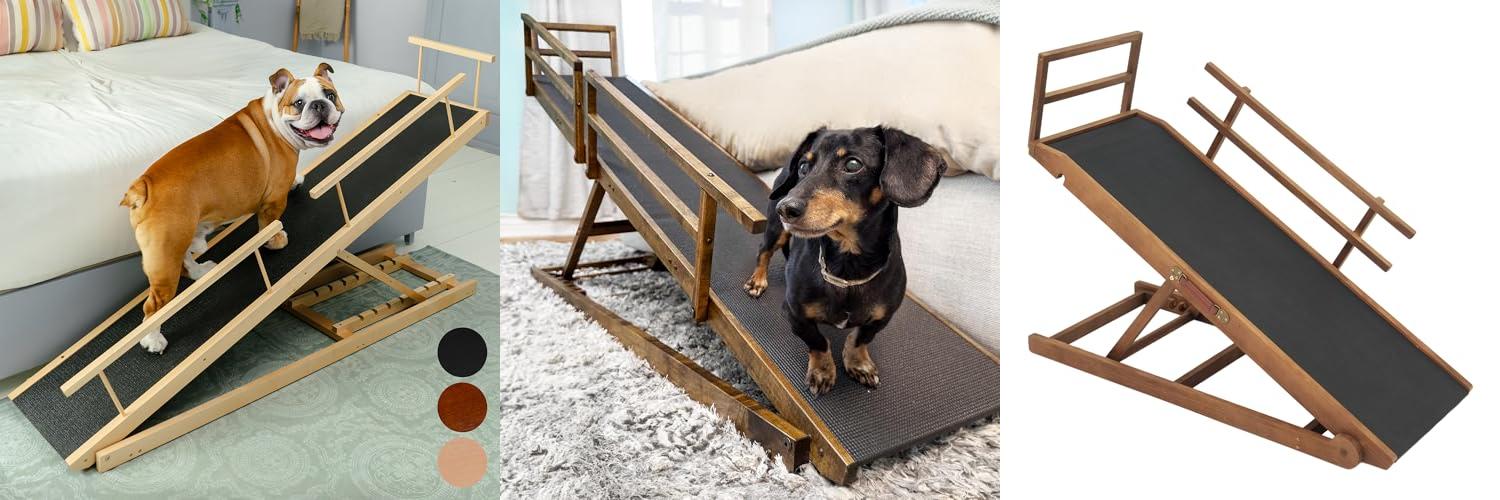 1. Dog ramp for Bed – PRIORPET Birchwood Adjustable Ramp for Dogs to Get on Bed: Dog ramps for High Beds up to 37 Inches – Foldable Ramp