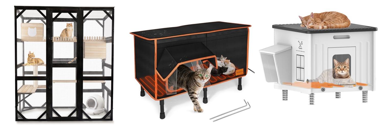 - It’s a heavy-duty cat house made with strong materials that can handle bad weather and bumps.