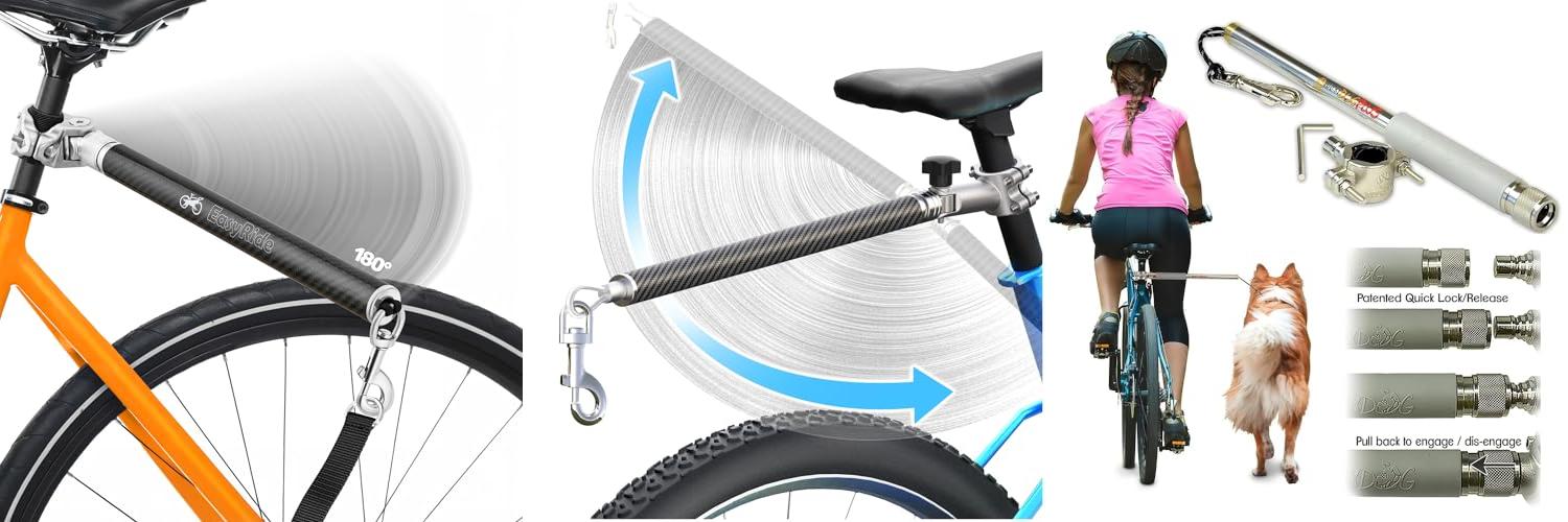 2. Hands-Free Bicycle Dog Leash for Cycling – 180° Rotating or Fixed Quick-Attach System