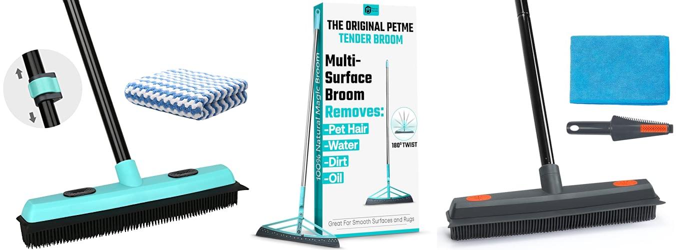 A: Rubber or microfiber brooms are generally the best. Rubber creates static to attract hair, and microfiber traps fine dust and hair.