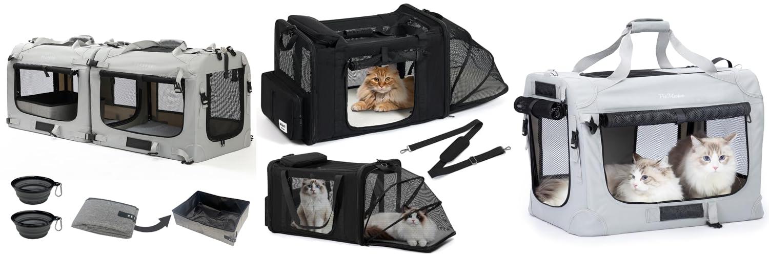 2. pidipiti 25”(L) x 17”(W) x 17”(H) Extra-Large Expandable cat Carrier for Long Distance car Travel