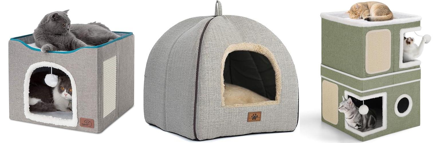 5. Bedsure Cat Beds for Indoor – 2 in 1 Cat Cave House Tent for Kittens and Small Pets with Removable Washable Cushioned Pillow