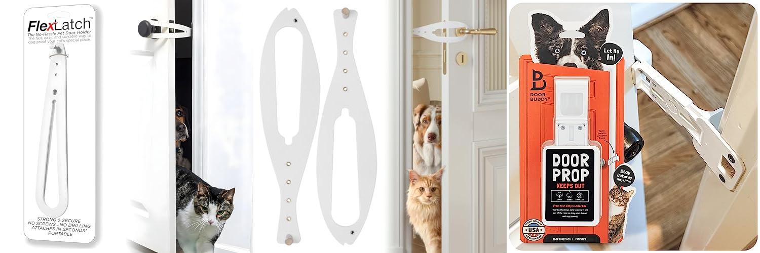 5. Door Buddy Cat Door Latch & Stopper. Adjustable Dog Proof Door Strap for Cats. Dog Proof Litter Box & Cat Feeder. Simpler Pet Gate Alternative. No Cut Cat Door Interior Door.