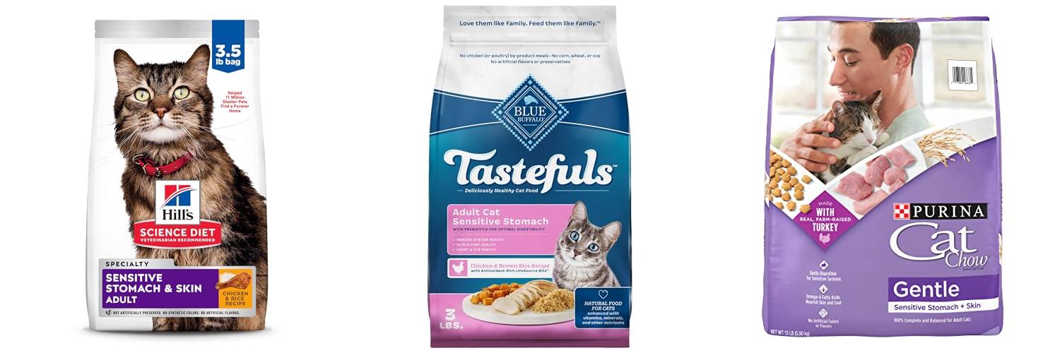 - Some brands make food specifically for cats with sensitive stomachs or hairballs.