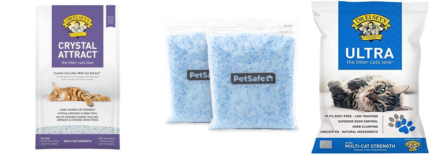 • Silica Gel: These are tiny crystals that are very good at absorbing liquid and trapping odors. Silica gel litter is often very low in dust and lightweight. It can also be a good choice for cats with allergies.