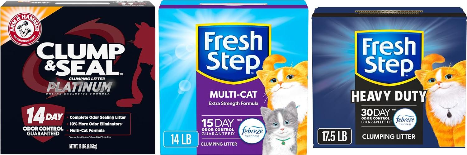 ARM & HAMMER Clump & Seal Platinum Cat Litter, Multi-Cat, 14-Day Odor Control, Rock-Hard Clumps, 18 lbs – Powerful Odor Eliminator with Baking Soda