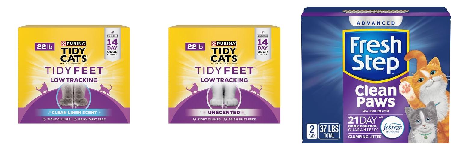1. Purina Tidy Cats Tidy Feet Clumping Low Tracking Cat Litter With Odor Control – Clean Linen Scent – 22 lb. Box