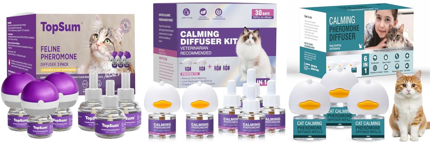 1. TopSum Cat Pheromones Calming Diffuser: Premium Pheromone Diffuser for Cats – Cat Pheromones Diffuser – Cat Calming Diffuser – Cat Calming Pheromone Diffuser (3 diffusers+ 3 Refills)