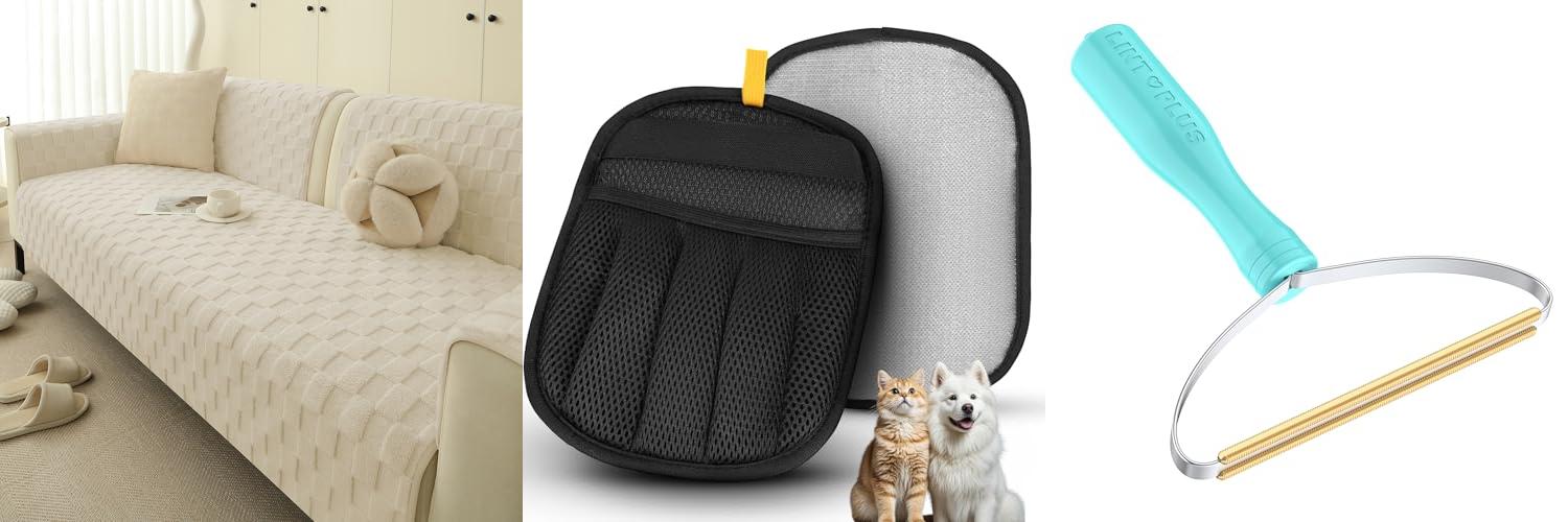 A: For most fabrics, a good vacuum with an upholstery attachment works well. For leather, a damp cloth is usually enough. For stubborn hair, rubber gloves or a lint roller can help lift it.