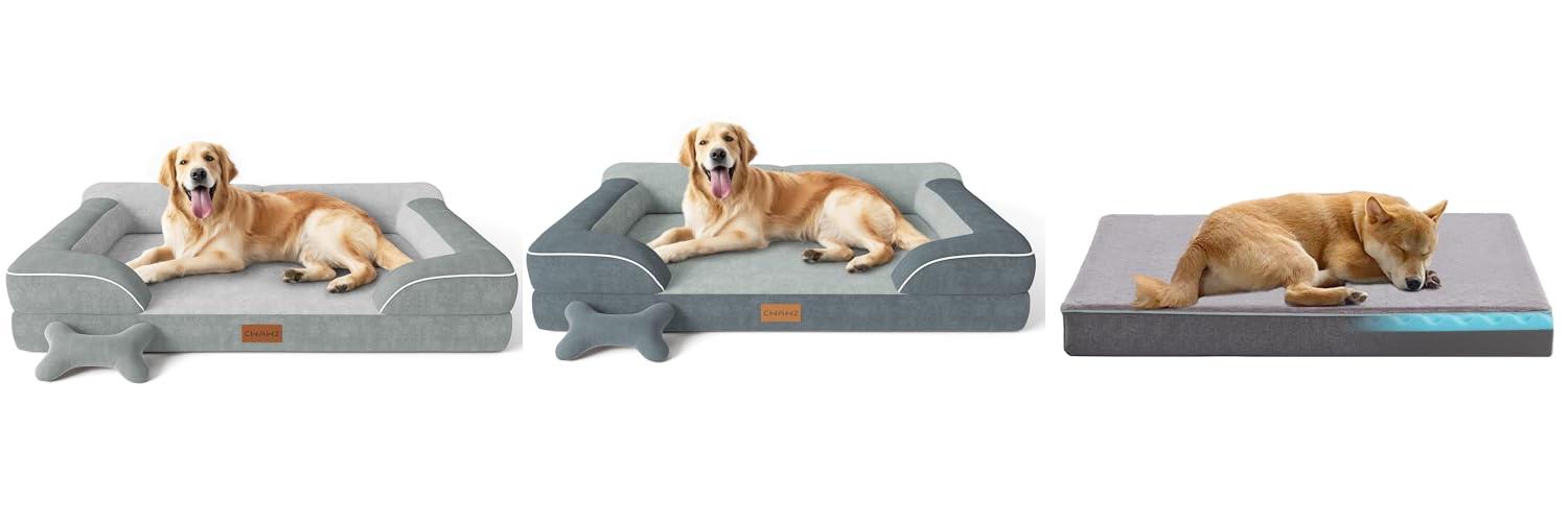 - The cooling gel memory foam keeps dogs comfortable on warm days.