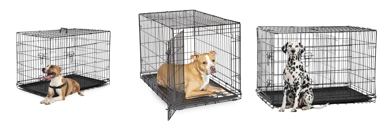 - This dog cage is incredibly safe. It has strong steel pipes and rounded corners. The dual latches on both doors keep your dog secure.