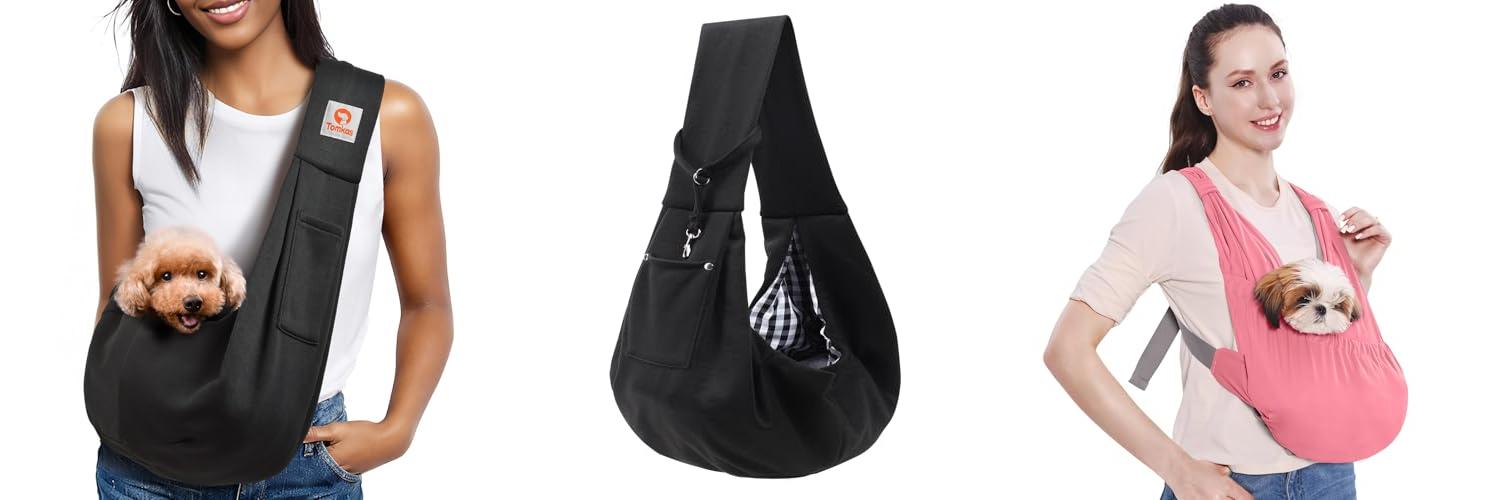 1. Tomkas Small Dog Sling Carrier – Classic Pocket & Classic Strap – for 3-10 lbs Pets(Black)
