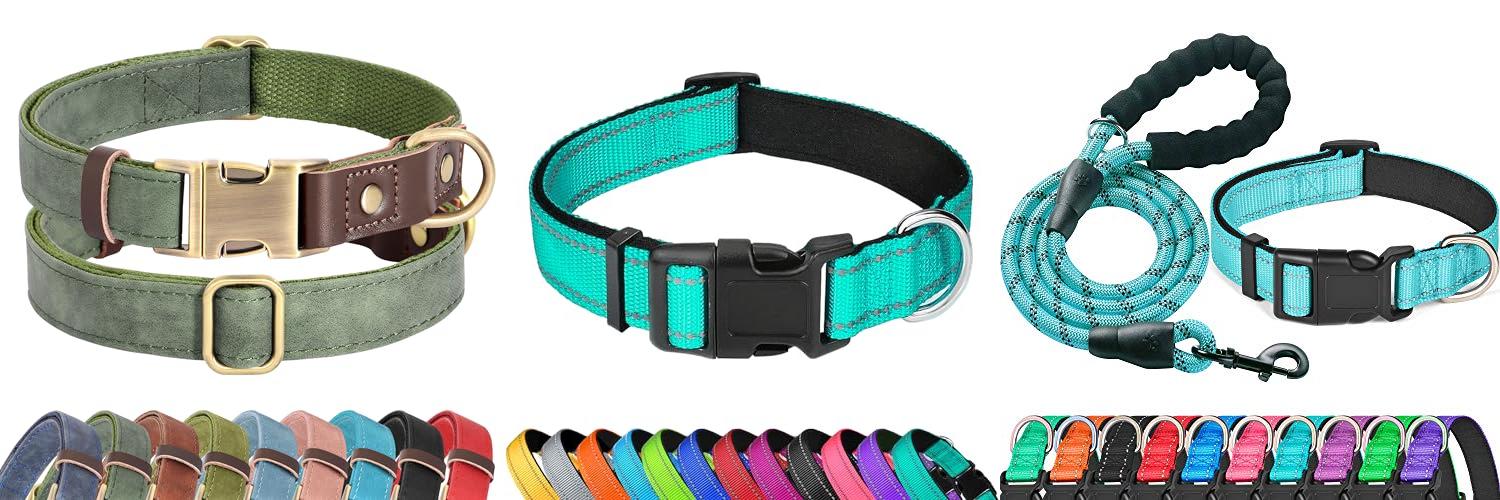 Leather collars are classic and durable. They can be very comfortable once broken in. High-quality leather ages well.