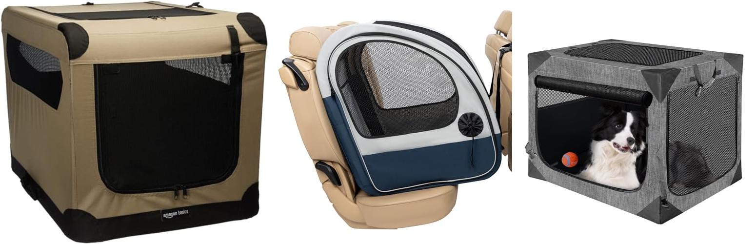 1. Amazon Basics 2-Door Portable Soft-Sided Folding Soft Dog Travel Crate Kennel