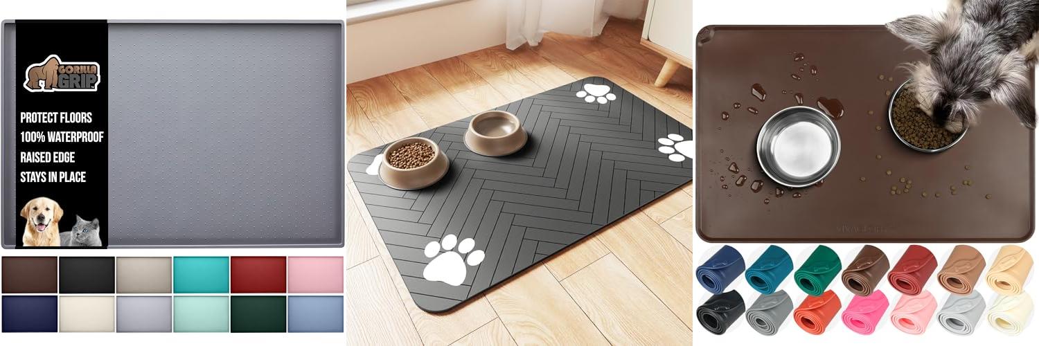 1. GORILLA GRIP 100% Waterproof Raised Edge BPA Free Silicone Pet Feeding Mat
