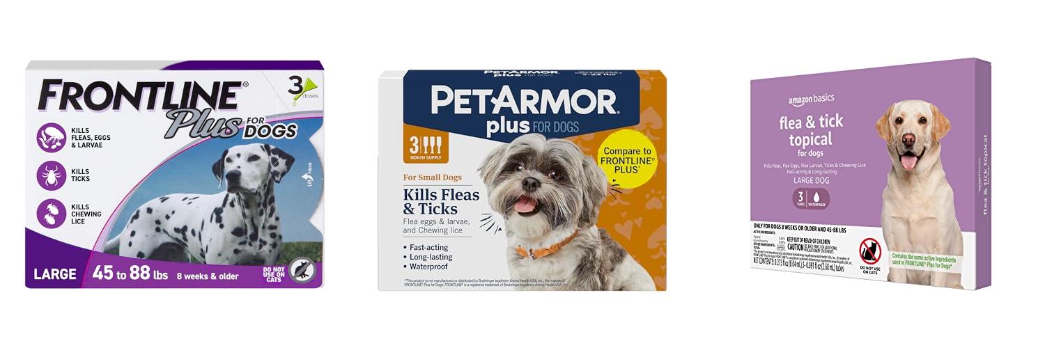 1. FRONTLINE Plus Flea and Tick Treatment for Large Dogs Up to 45 to 88 lbs. 3 Treatments