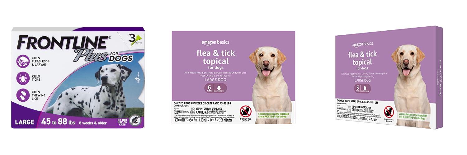 1. FRONTLINE Plus Flea and Tick Treatment for Large Dogs Up to 45 to 88 lbs. 3 Treatments