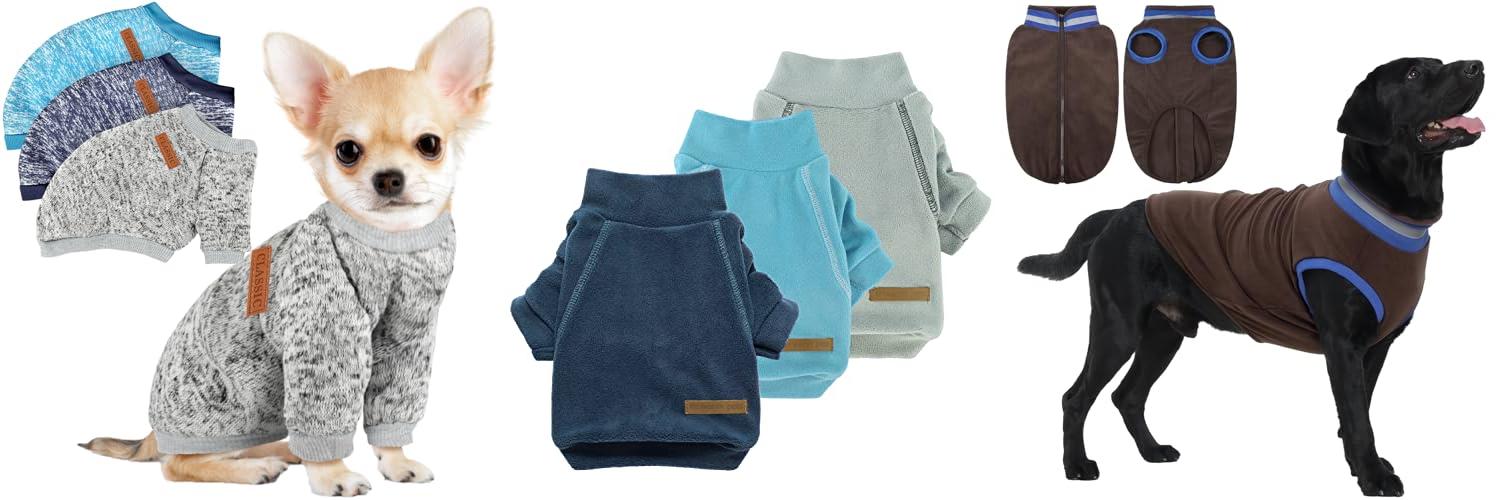 1. 3 Pack Dog Sweaters for Small Dogs Girl Boy Winter Fleece Clothes Warm Soft Dog Sweatshirt Outfit for Dogs Cats Pet Apparel (Navy Blue+Grey+Light Blue