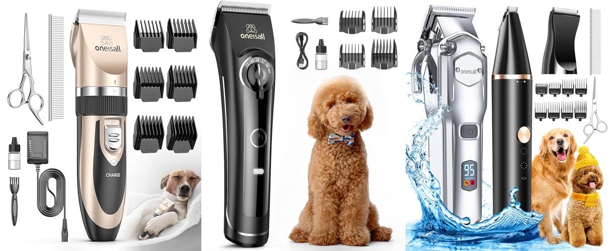 3. oneisall Dog Grooming Kit for Heavy Thick Hair&Coats/Low Noise Rechargeable Cordless Waterproof Dog Clippers for Grooming Animals&Pets/Pet Shaver with Stainless Steel Blade and Paw Trimmer