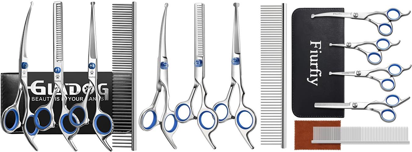 - Complete grooming kit: You get two straight scissors, one thinning scissor, one curved scissor, a grooming comb, and a handy storage case – everything you need in one package!
