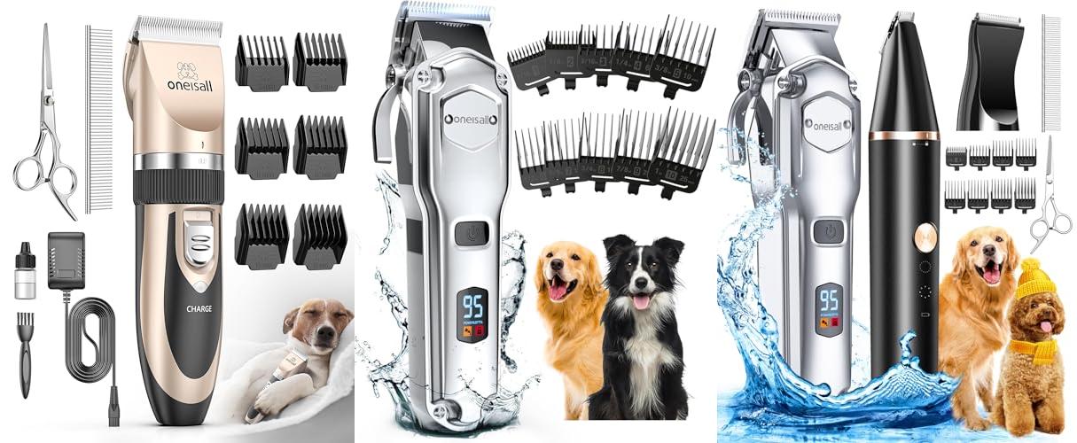 3. oneisall Dog Grooming Kit for Heavy Thick Hair&Coats/Low Noise Rechargeable Cordless Waterproof Dog Clippers for Grooming Animals&Pets/Pet Shaver with Stainless Steel Blade and Paw Trimmer