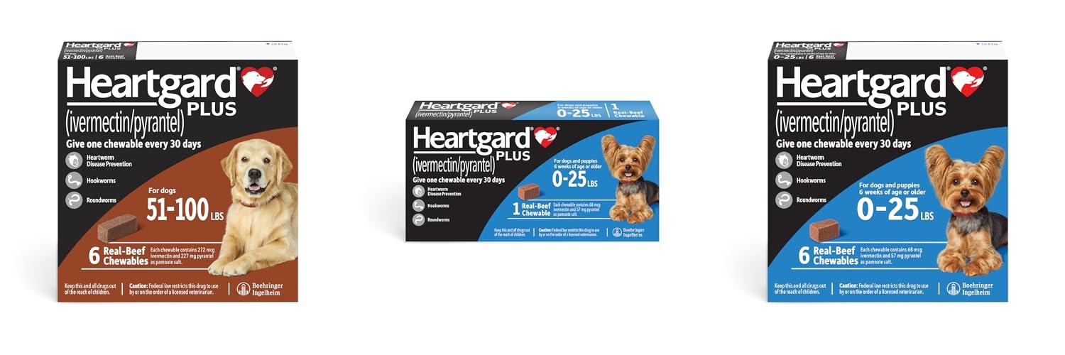 1. HEARTGARD® Plus (ivermectin/pyrantel) Real-Beef Chewables for Dogs 51-100 lbs (Brown Box) 6 Month Supply of Chews (Heartworm Disease Preventive)