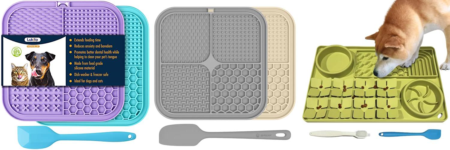 - **Size and Shape:** Mats come in different sizes. Choose one that fits your dog’s mouth and appetite. Smaller dogs might do well with a smaller mat. Larger dogs often need a bigger one. Square, round, and even bone shapes are available.