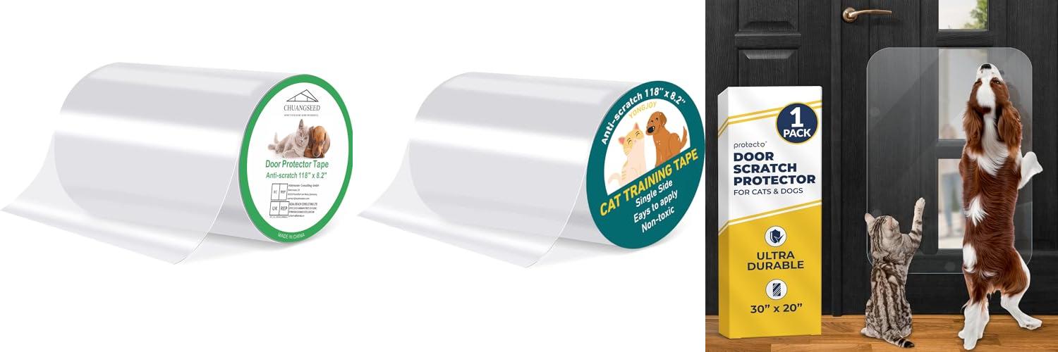 1. Door Protector from Dog Scratching 118″ x 8.2″ Cat Scratch Door Frame Single Side Adhesive Protector Anti Dog Scratch Door Guard for Dogs Clear CHUANGSEED