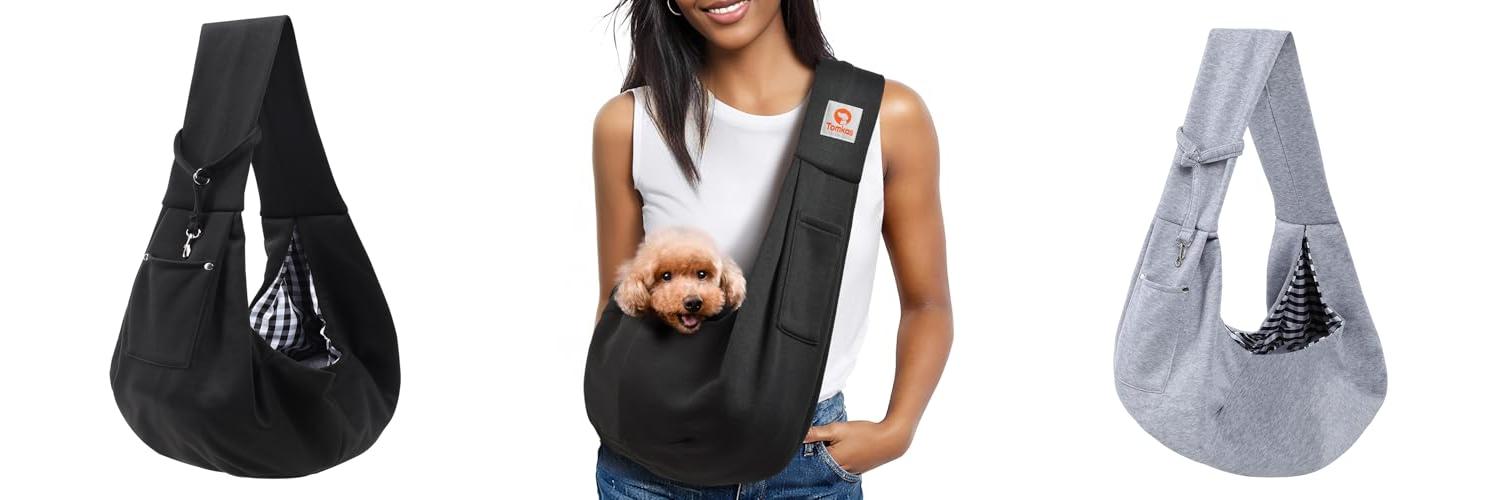 2. Tomkas Small Dog Sling Carrier – Classic Pocket & Classic Strap – for 3-10 lbs Pets(Black)