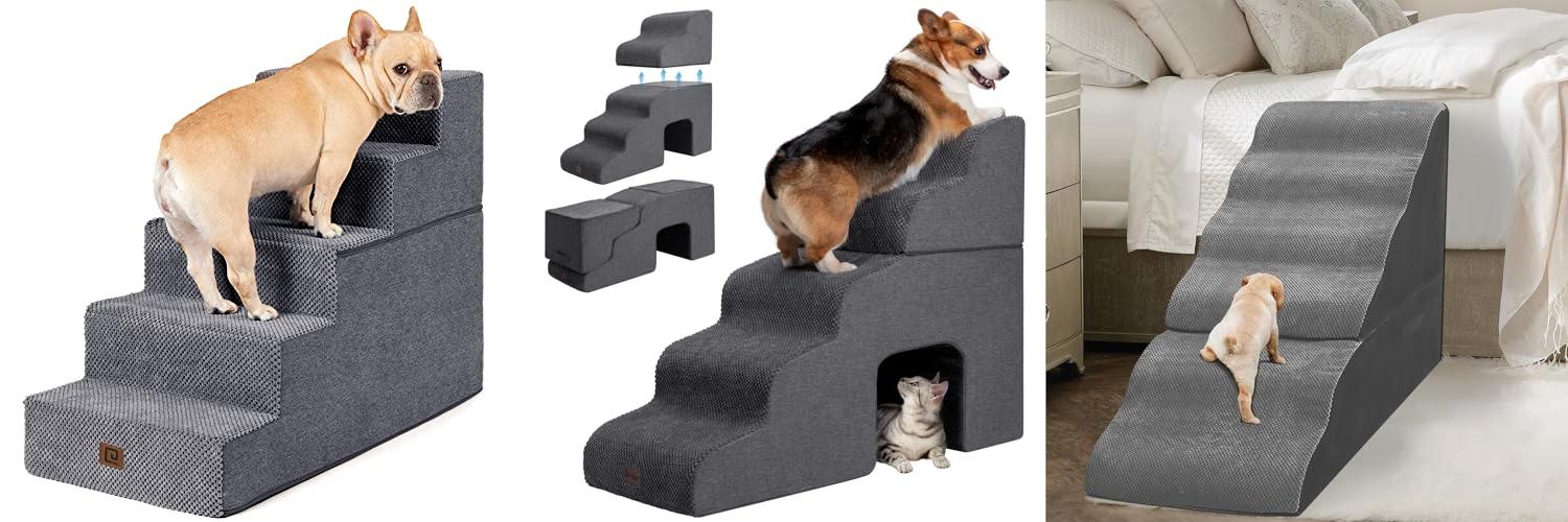 • Stable and Foldable Design: Made with high-density foam and a sturdy support board, these stairs are very stable. Plus, they can fold into a comfy dog bed!