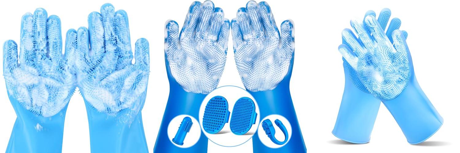 - Made from strong silicone, these gloves are stretchy and can handle heat. They also protect your hands from any accidental scratches from your pet.