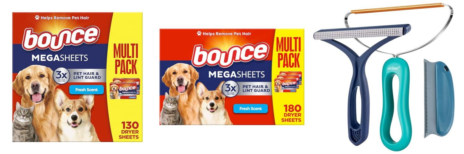 1. Bounce Pet Hair and Lint Guard Mega Dryer Sheets with 3X Pet Hair Fighters