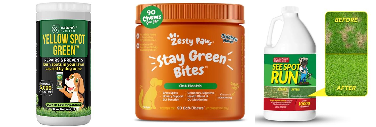 1. Yellow Spot Green™ Cures Urine Burns and Prevents Yellow Spots in Your Yard. Dog Urine Neutralizer for Lawns. Repair and Protect Grass from Dog Pee. Easy to Use Granules. Large 32 Ounce.