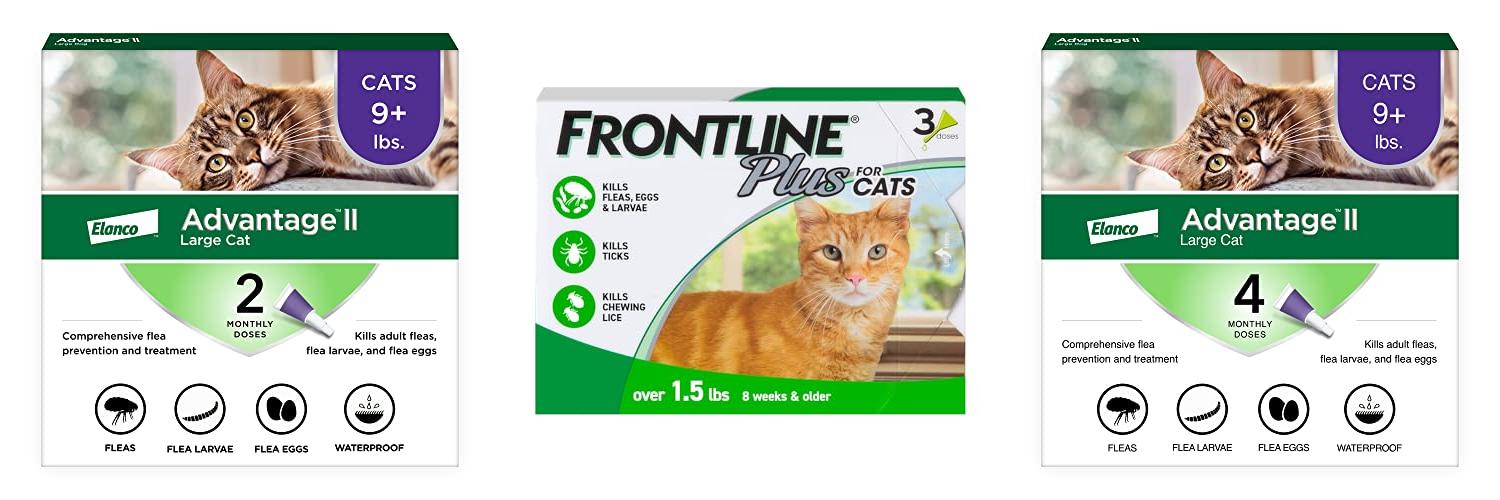 2. FRONTLINE Plus Flea and Tick Treatment for Cats Over 1.5 lbs. 3 Treatments