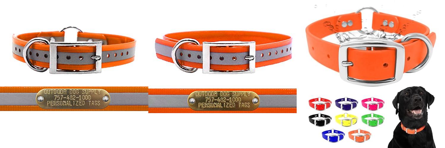 2. Outdoor Dog Supply 1″ Heavy Duty Reflective Waterproof D-Ring Dog Collar for Medium & Large Dogs with 3/4″ Custom Brass Nameplate (Reflective Orange