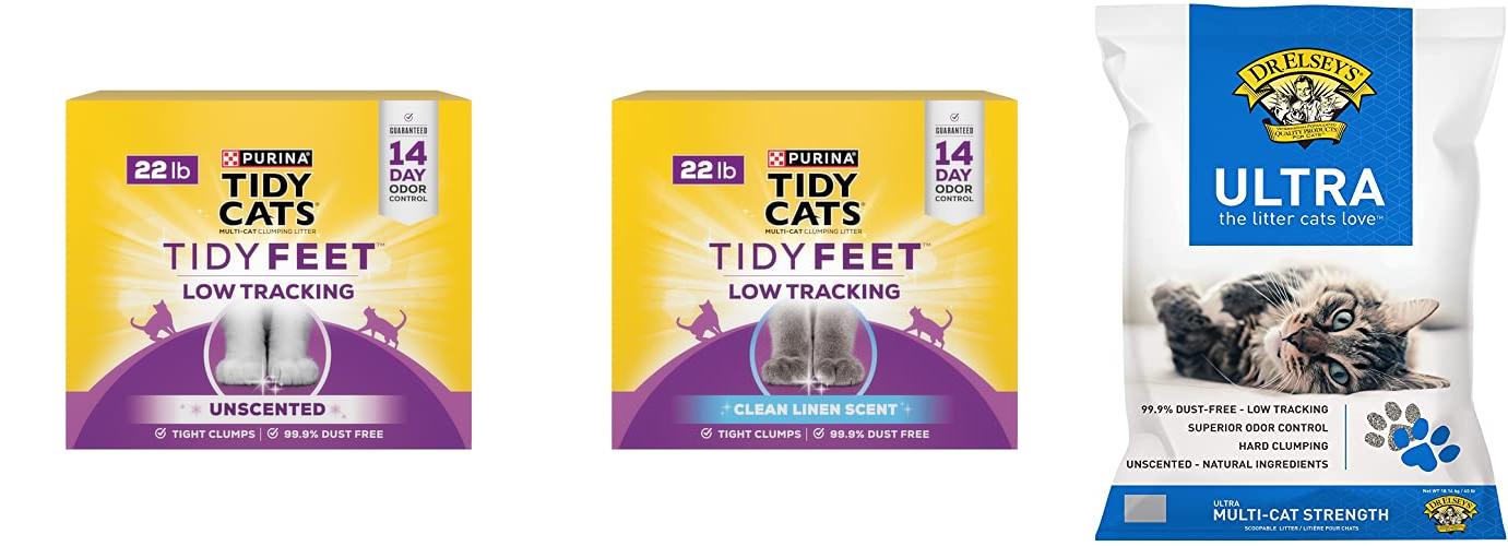1. Purina Tidy Cats Tidy Feet Clumping Low Tracking Cat Litter with Odor Control – Unscented – 22 lb. Box