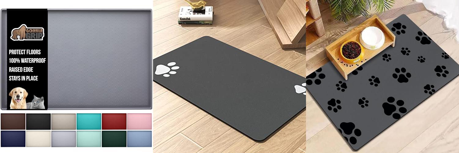 1. GORILLA GRIP 100% Waterproof Raised Edge BPA Free Silicone Pet Feeding Mat