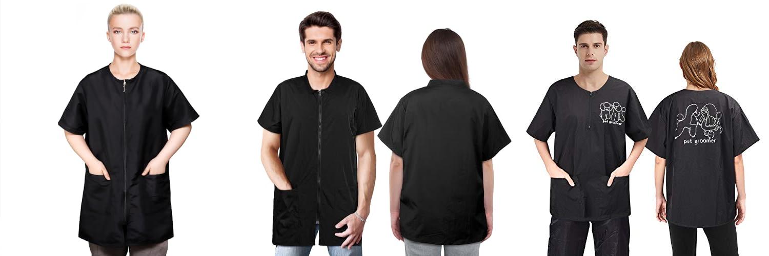 This workwear is a practical and stylish choice for anyone who loves grooming pets. It helps you stay comfortable and clean while you work.