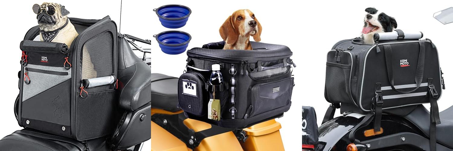 1. KEMIMOTO Motorcycle Dog Cat Carrier Bags Upgraded for Less Than 20 lbs Pets Carriers Portable Capacity Folding Backpack for Street Glide Road King with Passenger Seat Touring Trike Models Can AMS
