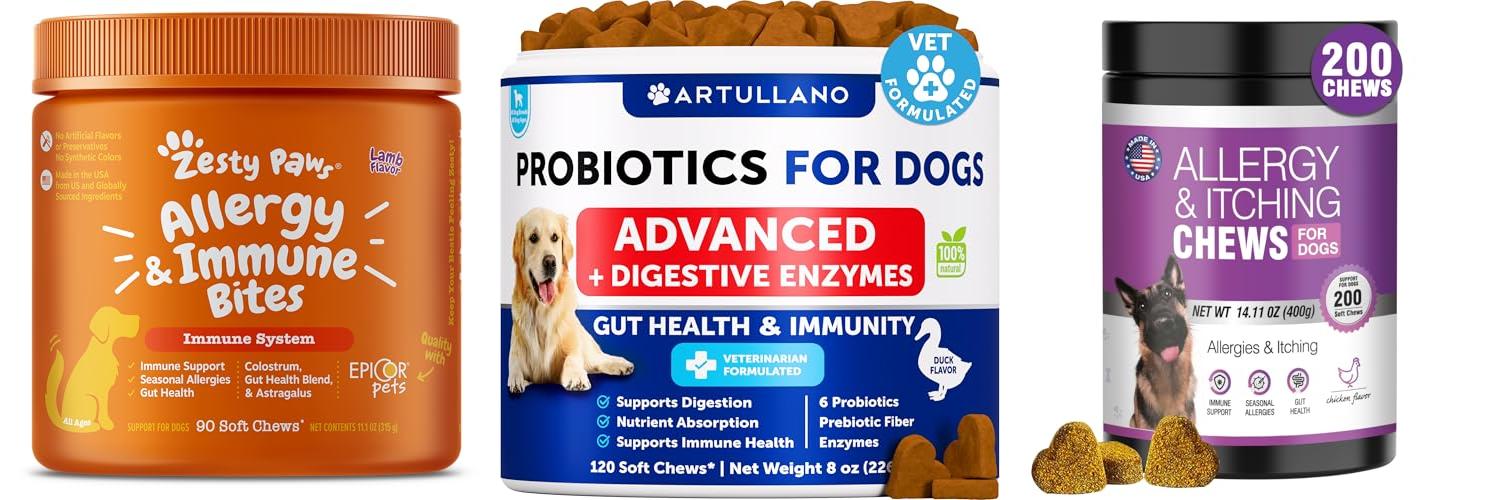 - This probiotic helps with itchy skin and allergies. It supports your dog’s immune system too.