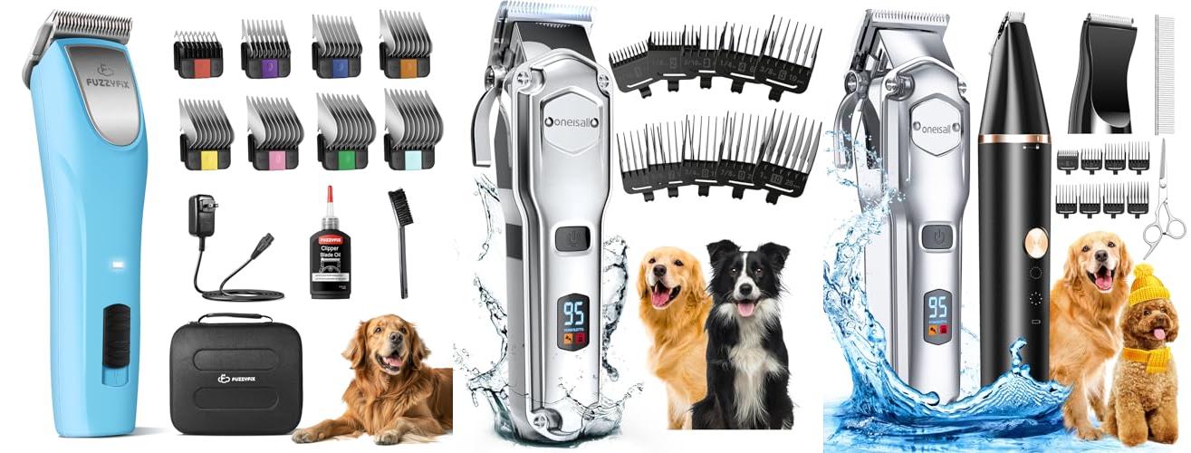 1. FuzzyFix Professional Dog Clippers for Grooming – 2 Speed Pet Grooming Kit for Thick Curly Matted Coats – Low Noise Heavy Duty Cordless Hair Trimmer with Detachable Metal Blade for Animal/Pet/Horse