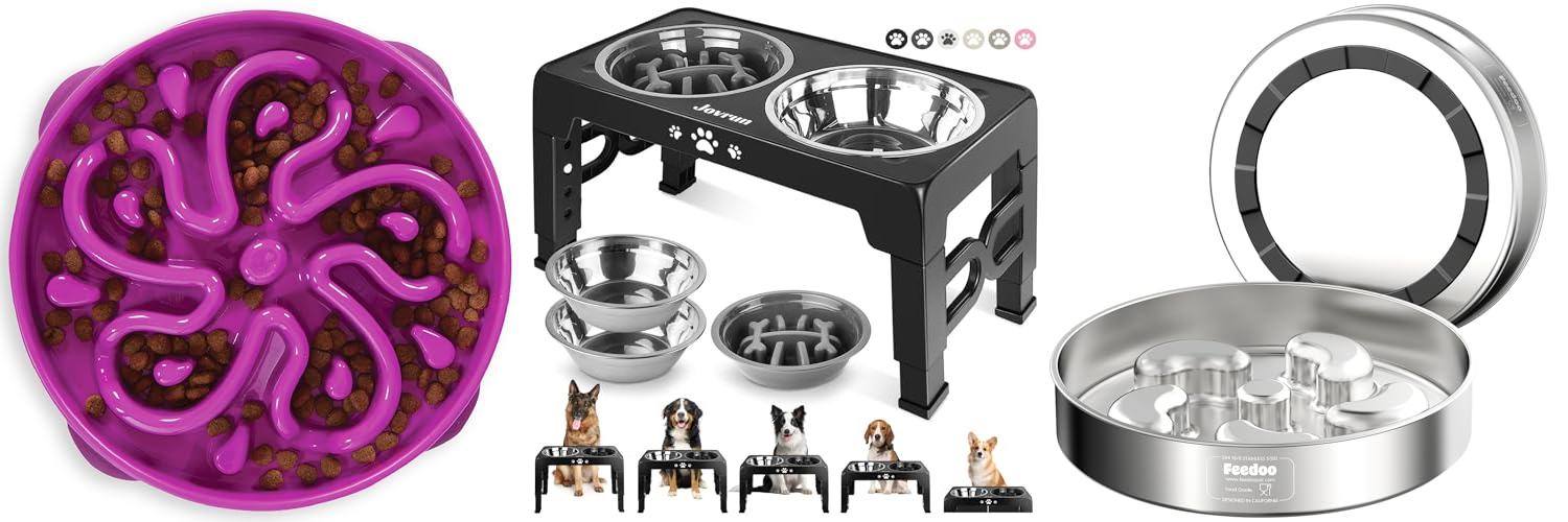 - Includes two durable stainless steel bowls and one slow feeder bowl, perfect for various food types and to help manage fast eaters.
