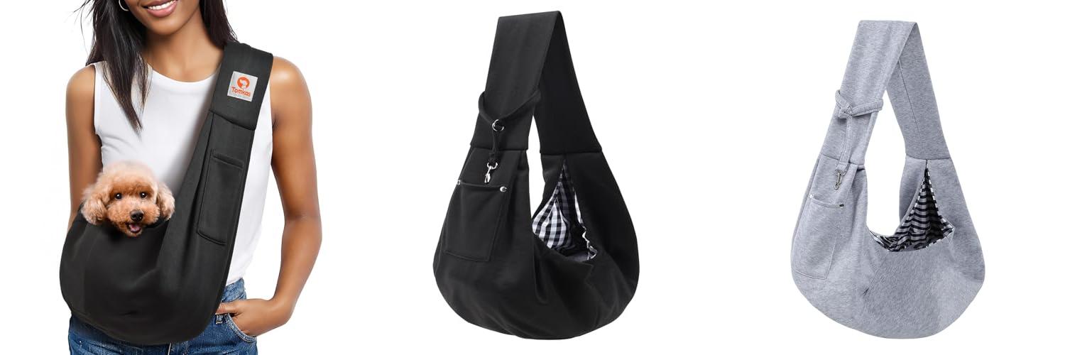 1. Tomkas Small Dog Sling Carrier – Classic Pocket & Classic Strap – for 3-10 lbs Pets(Black)